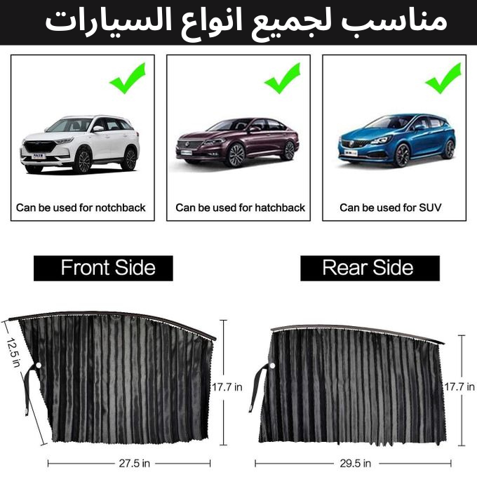 حماية الخصوصية: توفر الستائر الخصوصية الكاملة داخل السيارة، مما يجعلك تشعر بالراحة والأمان أثناء وجودك في السيارة.